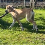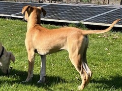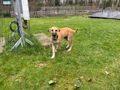 Orange is de allergrootste van het stel, ze is rustig en neemt de omgeving in haar op, ze weegt nu 5,9 kg, dus naar schatting zou ze ruim 25 kg kunnen worden.