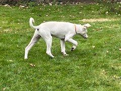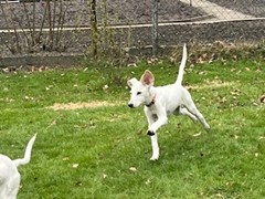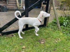 De bench blijft ’s nachts meestal schoon en overdag doet ze haar behoefte buiten als je er op tijd bij bent.. Ze loopt netjes aan de lijn en trekt niet. Ze is erg vriendelijk met andere honden en is dol op het achtervolgen van vogels. We zijn helemaal verliefd op haar en weten dat haar persoonlijkheid zal stralen bij haar toekomstige gezin. Ze is de allerliefste.