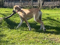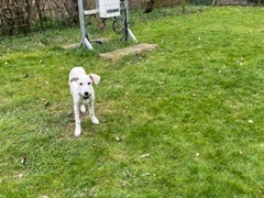 Red is nu 4,5 kg en zou dus zo’n 19 kg worden, maar ik vraag me af of ze dat gaat halen. Ze is eerst wat verlegen maar dan ook heel speels  en nieuwsgierig.