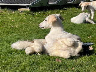 Er zijn 3 blonde pups (creme) en 2 bruine pups, het zijn allemaal teefjes. De eerste 10 weken hebben ze in de woestijn geleefd, de moeder had een hol gemaakt achter ondoordringbare struiken, dus niemand kon ze pakken. Er liepen een paar reuen rond, het is niet duidelijk wie de vader is. Hun eerste 10 weken verliepen dus helemaal in de natuur!