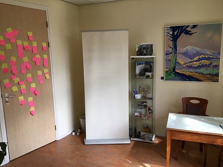 Er is een grote wachtkamer waar de thee klaarstaat voor uw cliënten.